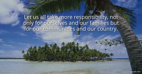 Clinton, William J. "Let us all take more responsibility, not only for ourselves and our families but for our communities and our country." FixQuotes. January 17, 2026. https://fixquotes.com/quotes/let-us-all-take-more-responsibility-not-only-for-78928/.