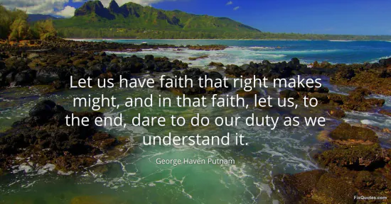 Putnam, George Haven. "Let us have faith that right makes might, and in that faith, let us, to the end, dare to do our duty as we understand it." FixQuotes. January 17, 2026. https://fixquotes.com/quotes/let-us-have-faith-that-right-makes-might-and-in-61482/.