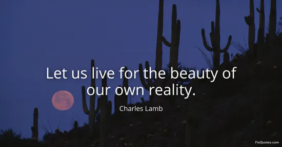 Lamb, Charles. (2026, January 17). Let us live for the beauty of our own reality. FixQuotes. https://fixquotes.com/quotes/let-us-live-for-the-beauty-of-our-own-reality-45009/