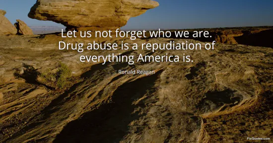 Reagan, Ronald. (2026, January 15). Let us not forget who we are. Drug abuse is a repudiation of everything America is. FixQuotes. https://fixquotes.com/quotes/let-us-not-forget-who-we-are-drug-abuse-is-a-27050/