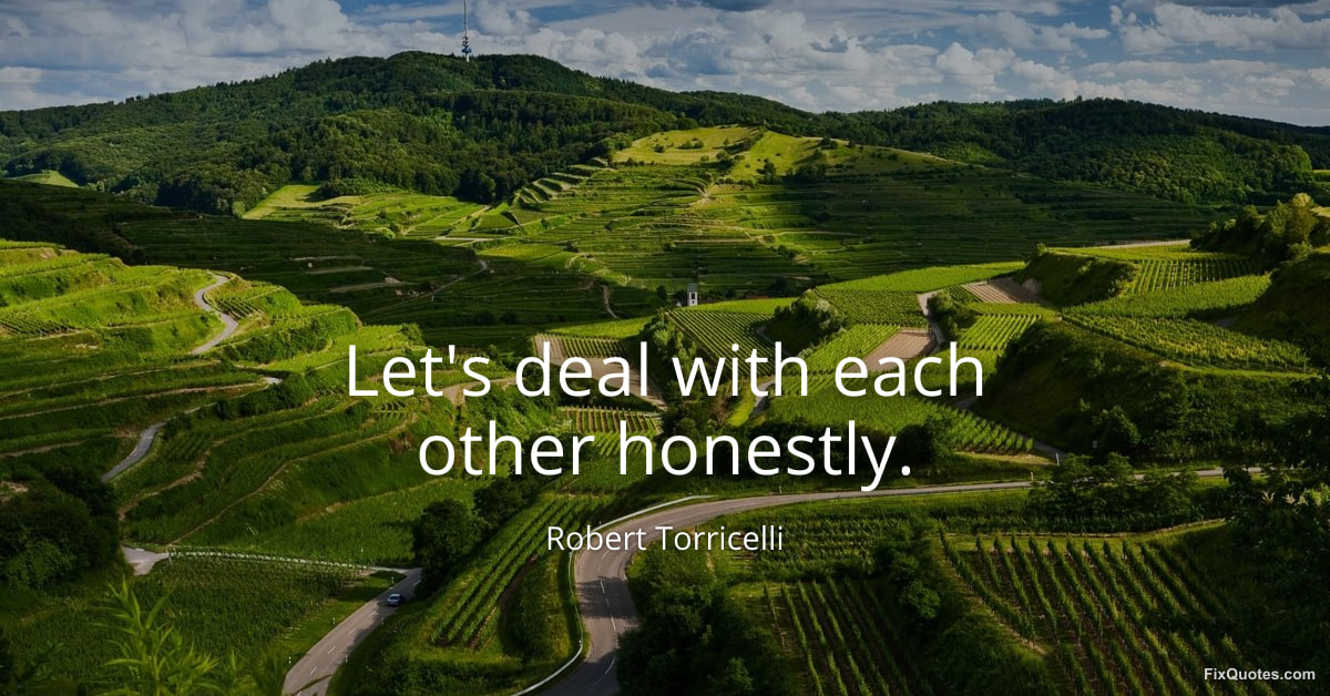 Torricelli, Robert. (2026, January 16). Let's deal with each other honestly. FixQuotes. https://fixquotes.com/quotes/lets-deal-with-each-other-honestly-129018/
