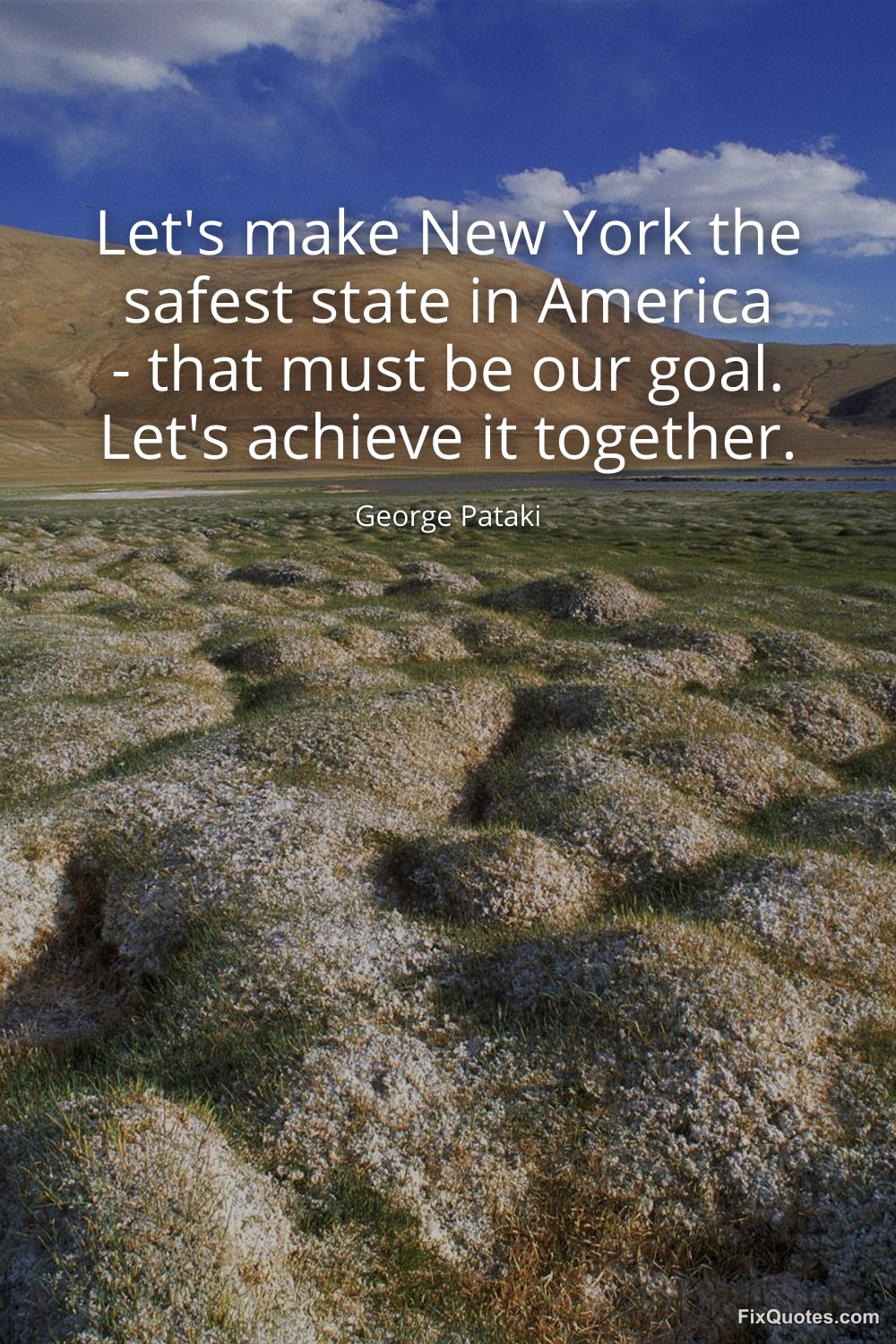 Pataki, George. (2026, January 17). Let's make New York the safest state in America - that must be our goal. Let's achieve it together. FixQuotes. https://fixquotes.com/quotes/lets-make-new-york-the-safest-state-in-america-43583/