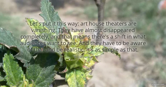 Herzog, Werner. (2026, January 16). Let's put it this way: art house theaters are vanishing. They have almost disappeared completely, and that means there's a shift in what audiences want to see. And they have to be aware of that and be realistic. It's as simple as that. FixQuotes. https://fixquotes.com/quotes/lets-put-it-this-way-art-house-theaters-are-116613/