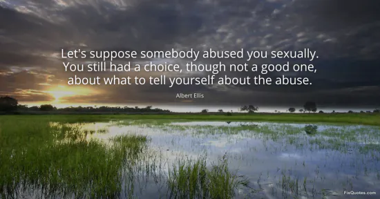 Ellis, Albert. "Let's suppose somebody abused you sexually. You still had a choice, though not a good one, about what to tell yourself about the abuse." FixQuotes. January 17, 2026. https://fixquotes.com/quotes/lets-suppose-somebody-abused-you-sexually-you-29626/.