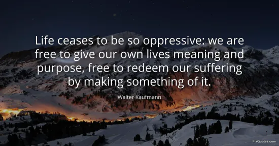 Kaufmann, Walter. "Life ceases to be so oppressive: we are free to give our own lives meaning and purpose, free to redeem our suffering by making something of it." FixQuotes. January 16, 2026. https://fixquotes.com/quotes/life-ceases-to-be-so-oppressive-we-are-free-to-108105/.
