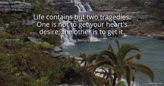 Shaw, George Bernard. (2026, January 15). Life contains but two tragedies. One is not to get your heart's desire; the other is to get it. FixQuotes. https://fixquotes.com/quotes/life-contains-but-two-tragedies-one-is-not-to-get-36206/