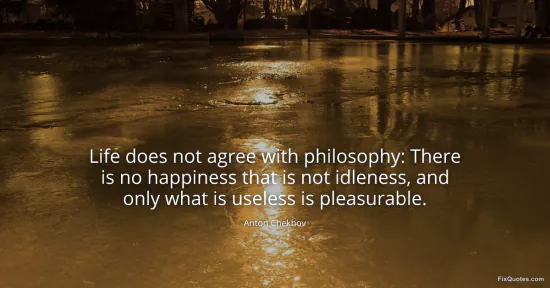 Chekhov, Anton. (2026, January 17). Life does not agree with philosophy: There is no happiness that is not idleness, and only what is useless is pleasurable. FixQuotes. https://fixquotes.com/quotes/life-does-not-agree-with-philosophy-there-is-no-36992/