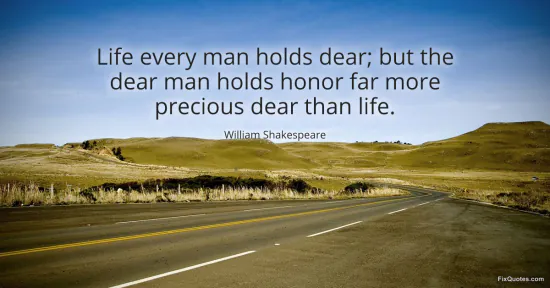 Shakespeare, William. "Life every man holds dear; but the dear man holds honor far more precious dear than life." FixQuotes. February 12, 2026. https://fixquotes.com/quotes/life-every-man-holds-dear-but-the-dear-man-holds-27556/.