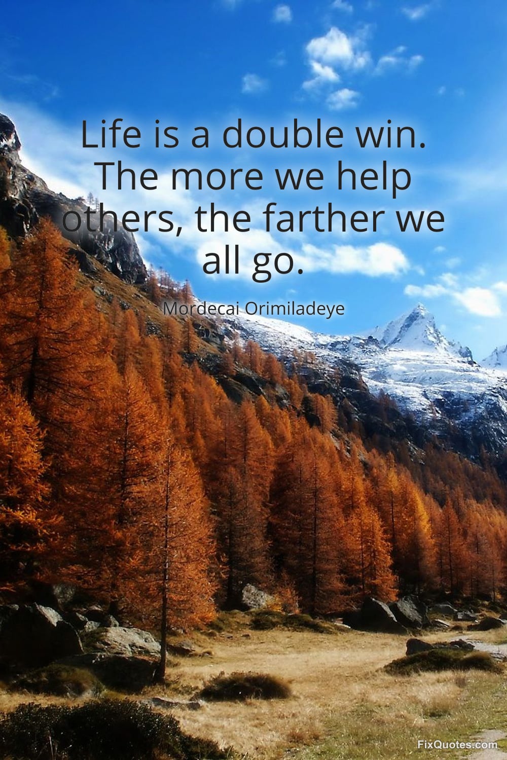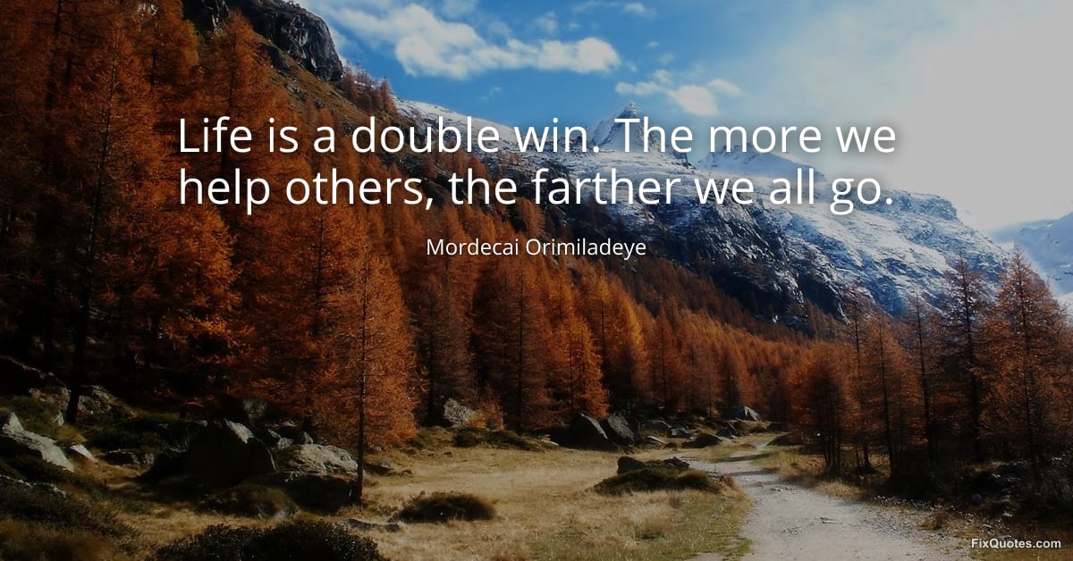 Orimiladeye, Mordecai. "Life is a double win. The more we help others, the farther we all go." FixQuotes. February 17, 2026. https://fixquotes.com/quotes/life-is-a-double-win-the-more-we-help-others-the-185605/.