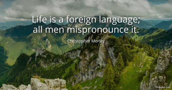 Morley, Christopher. "Life is a foreign language; all men mispronounce it." FixQuotes. January 17, 2026. https://fixquotes.com/quotes/life-is-a-foreign-language-all-men-mispronounce-it-40813/.