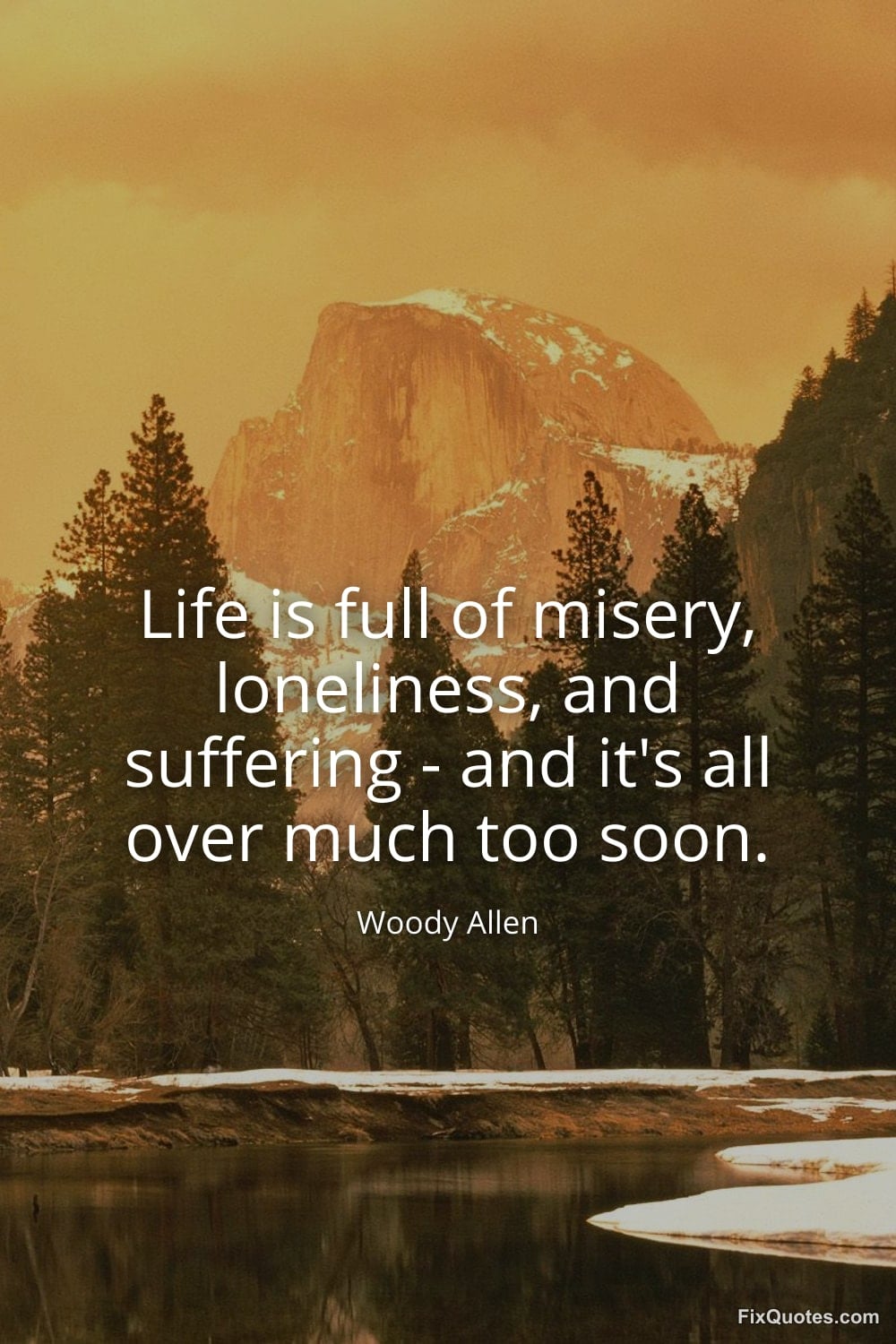 Allen, Woody. (2026, February 11). Life is full of misery, loneliness, and suffering - and it's all over much too soon. FixQuotes. https://fixquotes.com/quotes/life-is-full-of-misery-loneliness-and-suffering-11233/