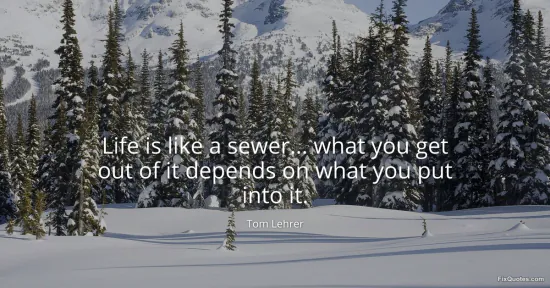Lehrer, Tom. "Life is like a sewer... what you get out of it depends on what you put into it." FixQuotes. January 14, 2026. https://fixquotes.com/quotes/life-is-like-a-sewer-what-you-get-out-of-it-96199/.