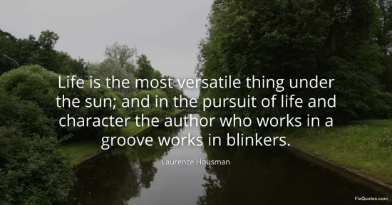 Housman, Laurence. "Life is the most versatile thing under the sun; and in the pursuit of life and character the author who works in a groove works in blinkers." FixQuotes. January 17, 2026. https://fixquotes.com/quotes/life-is-the-most-versatile-thing-under-the-sun-81049/.