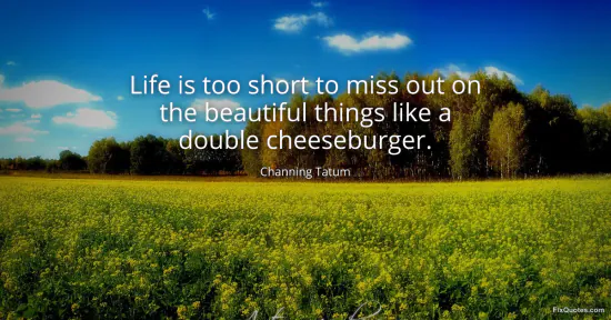 Tatum, Channing. (2026, January 17). Life is too short to miss out on the beautiful things like a double cheeseburger. FixQuotes. https://fixquotes.com/quotes/life-is-too-short-to-miss-out-on-the-beautiful-38803/