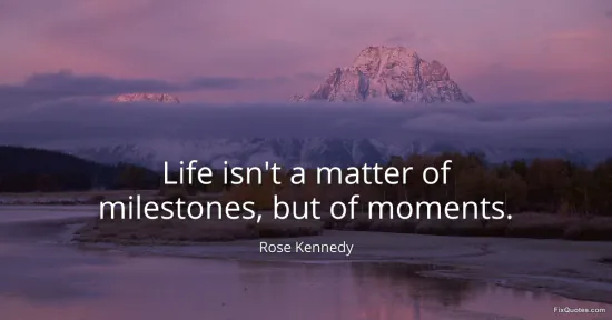 Kennedy, Rose. (2026, January 14). Life isn't a matter of milestones, but of moments. FixQuotes. https://fixquotes.com/quotes/life-isnt-a-matter-of-milestones-but-of-moments-123275/