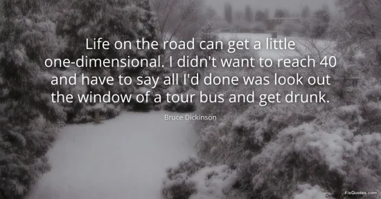 Dickinson, Bruce. (2026, January 17). Life on the road can get a little one-dimensional. I didn't want to reach 40 and have to say all I'd done was look out the window of a tour bus and get drunk. FixQuotes. https://fixquotes.com/quotes/life-on-the-road-can-get-a-little-one-dimensional-49032/