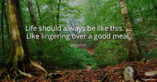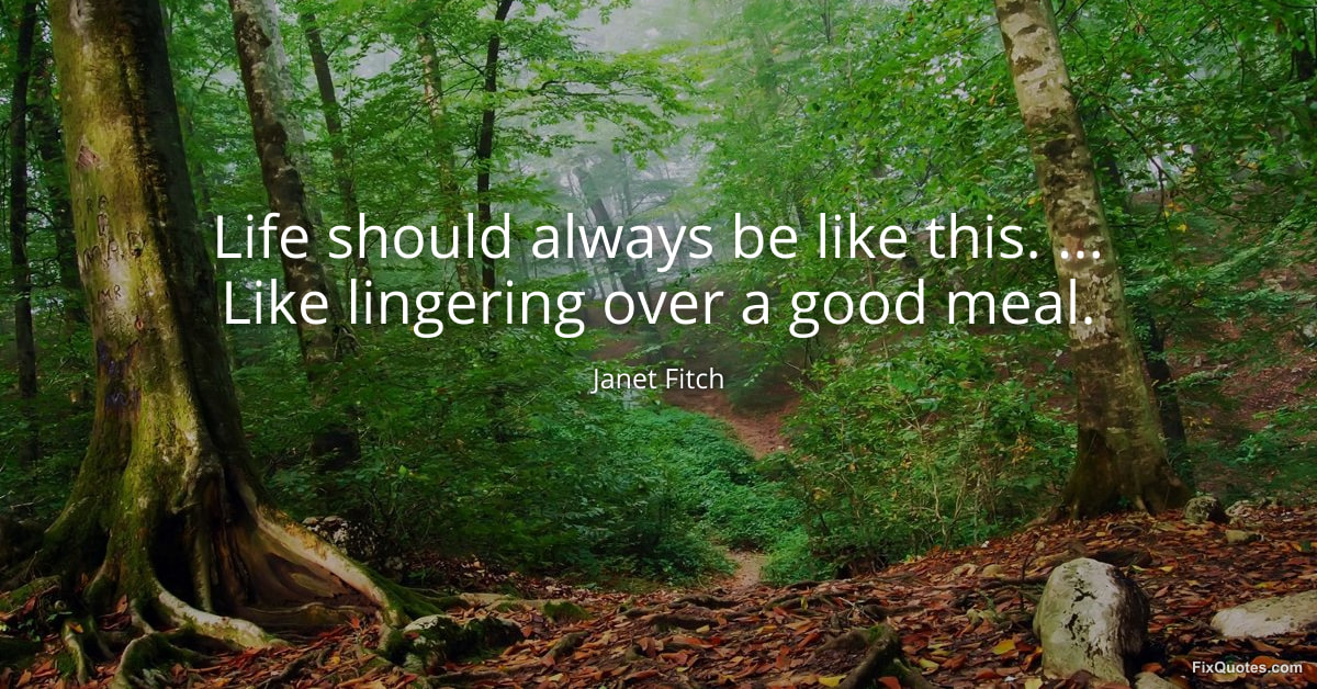 Fitch, Janet. (2026, January 11). Life should always be like this. ... Like lingering over a good meal. FixQuotes. https://fixquotes.com/quotes/life-should-always-be-like-this-like-lingering-183841/