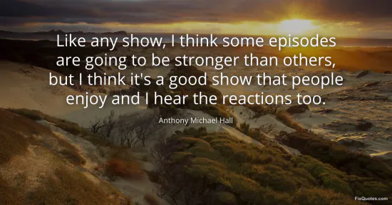 Hall, Anthony Michael. (2026, January 17). Like any show, I think some episodes are going to be stronger than others, but I think it's a good show that people enjoy and I hear the reactions too. FixQuotes. https://fixquotes.com/quotes/like-any-show-i-think-some-episodes-are-going-to-44267/