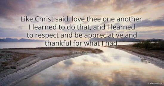 Brown, James. "Like Christ said, love thee one another. I learned to do that, and I learned to respect and be appreciative and thankful for what I had." FixQuotes. January 16, 2026. https://fixquotes.com/quotes/like-christ-said-love-thee-one-another-i-learned-105962/.