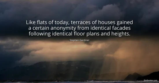 Gardiner, Stephen. (2026, January 15). Like flats of today, terraces of houses gained a certain anonymity from identical facades following identical floor plans and heights. FixQuotes. https://fixquotes.com/quotes/like-flats-of-today-terraces-of-houses-gained-a-148075/