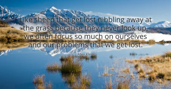 Klein, Allen. (2026, January 15). Like sheep that get lost nibbling away at the grass because they never look up, we often focus so much on ourselves and our problems that we get lost. FixQuotes. https://fixquotes.com/quotes/like-sheep-that-get-lost-nibbling-away-at-the-74431/