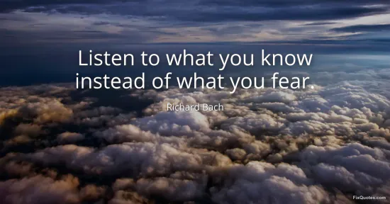 Bach, Richard. (2026, January 17). Listen to what you know instead of what you fear. FixQuotes. https://fixquotes.com/quotes/listen-to-what-you-know-instead-of-what-you-fear-37168/