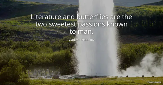 Nabokov, Vladimir. (2026, January 15). Literature and butterflies are the two sweetest passions known to man. FixQuotes. https://fixquotes.com/quotes/literature-and-butterflies-are-the-two-sweetest-10611/