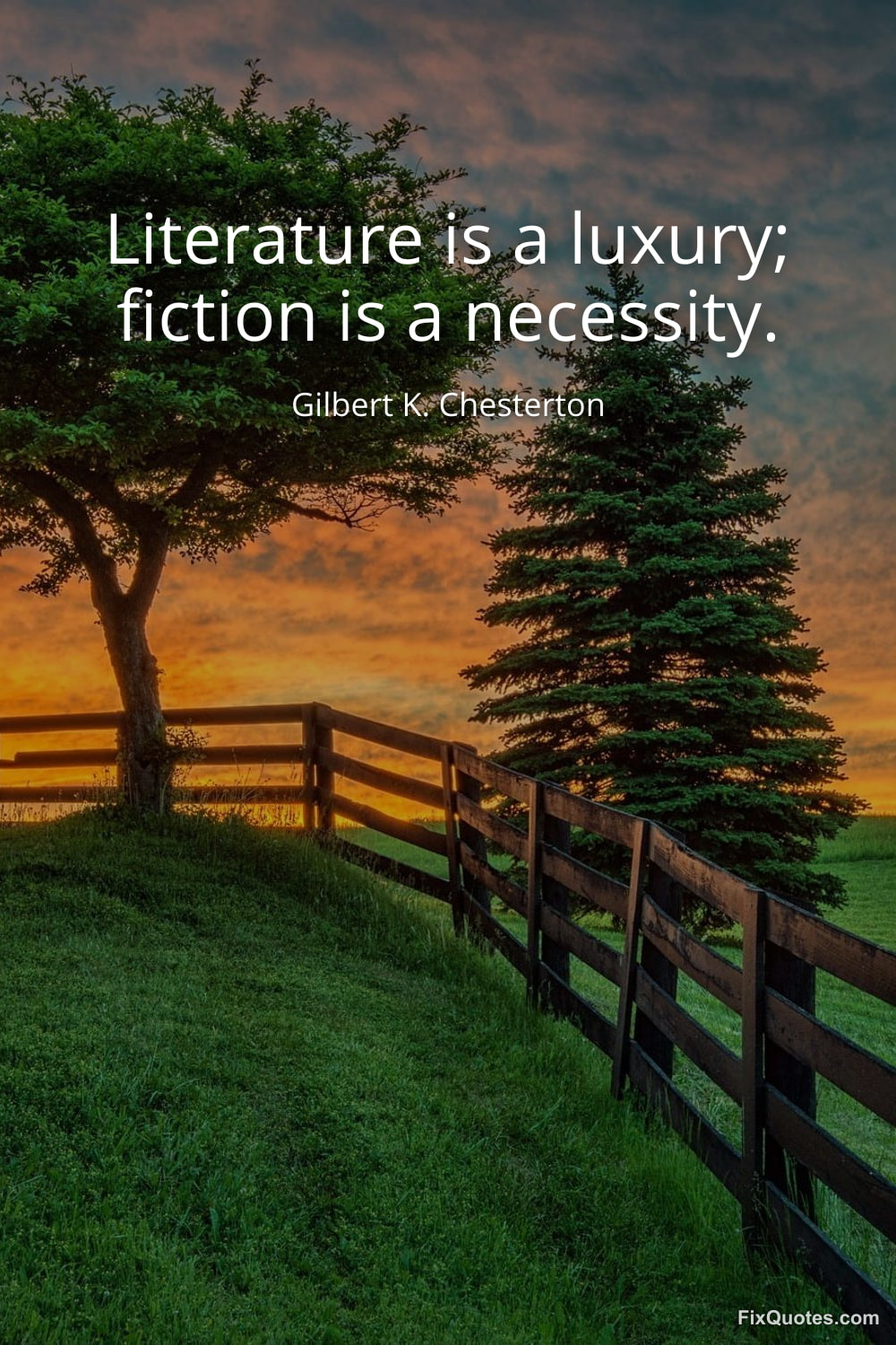 Chesterton, Gilbert K. (2026, February 17). Literature is a luxury; fiction is a necessity. FixQuotes. https://fixquotes.com/quotes/literature-is-a-luxury-fiction-is-a-necessity-7382/