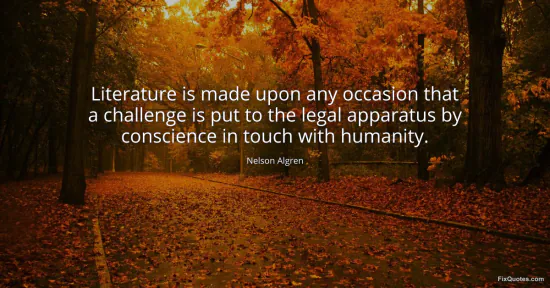 Algren, Nelson. (2026, January 16). Literature is made upon any occasion that a challenge is put to the legal apparatus by conscience in touch with humanity. FixQuotes. https://fixquotes.com/quotes/literature-is-made-upon-any-occasion-that-a-136626/