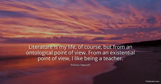 Tabucchi, Antonio. (2026, February 20). Literature is my life, of course, but from an ontological point of view. From an existential point of view, I like being a teacher. FixQuotes. https://fixquotes.com/quotes/literature-is-my-life-of-course-but-from-an-21697/