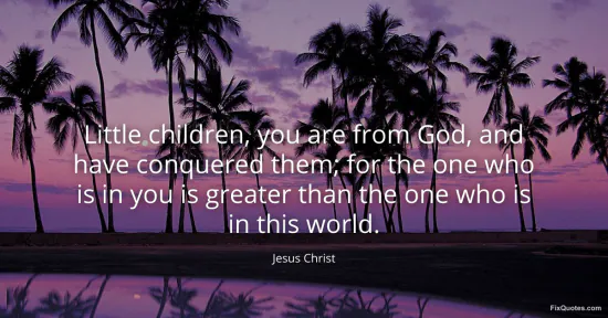 Christ, Jesus. (2026, January 16). Little children, you are from God, and have conquered them; for the one who is in you is greater than the one who is in this world. FixQuotes. https://fixquotes.com/quotes/little-children-you-are-from-god-and-have-100560/