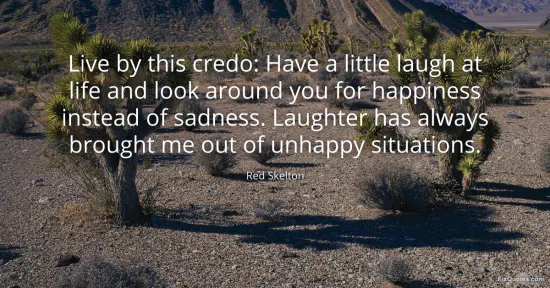 Skelton, Red. (2026, February 20). Live by this credo: Have a little laugh at life and look around you for happiness instead of sadness. Laughter has always brought me out of unhappy situations. FixQuotes. https://fixquotes.com/quotes/live-by-this-credo-have-a-little-laugh-at-life-14925/