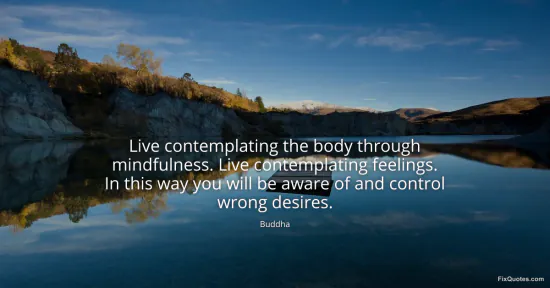 "Live contemplating the body through mindfulness. Live contemplating feelings. In this way you will be aware of and control wrong desires." FixQuotes, 10 Mar. 2026, https://fixquotes.com/quotes/live-contemplating-the-body-through-mindfulness-185929/. Accessed 15 Mar. 2026.