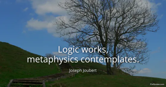 Joubert, Joseph. (2026, January 18). Logic works, metaphysics contemplates. FixQuotes. https://fixquotes.com/quotes/logic-works-metaphysics-contemplates-21303/