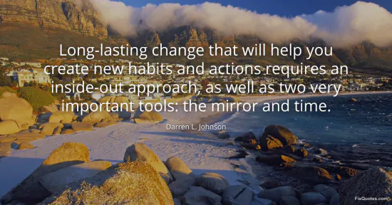 Johnson, Darren L. (2026, January 16). Long-lasting change that will help you create new habits and actions requires an inside-out approach, as well as two very important tools: the mirror and time. FixQuotes. https://fixquotes.com/quotes/long-lasting-change-that-will-help-you-create-new-87984/