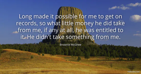McGhee, Brownie. "Long made it possible for me to get on records, so what little money he did take from me, if any at all, he was entitled to it. He didn't take something from me." FixQuotes. January 17, 2026. https://fixquotes.com/quotes/long-made-it-possible-for-me-to-get-on-records-so-66023/.