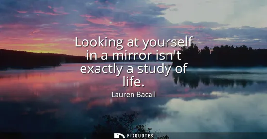 Vanity is a dead end, and Bacall delivers that verdict with the kind of dry precision that made her screen persona feel like a raised eyebrow you could hear. "Looking at yourself in a mirror" evokes more than grooming or checking a good angle; it’s a whole cultural ritual of self-surveillance. The mirror is intimate, immediate, and utterly controllable. Life, in contrast, is messy: other people interrupt, time erodes, consequences land.