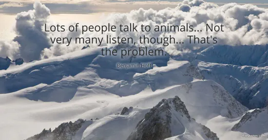 Hoff, Benjamin. (2026, January 15). Lots of people talk to animals... Not very many listen, though... That's the problem. FixQuotes. https://fixquotes.com/quotes/lots-of-people-talk-to-animals-not-very-many-149876/