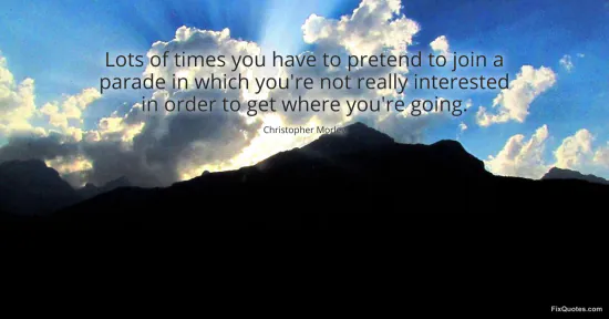Morley, Christopher. (2026, January 17). Lots of times you have to pretend to join a parade in which you're not really interested in order to get where you're going. FixQuotes. https://fixquotes.com/quotes/lots-of-times-you-have-to-pretend-to-join-a-40814/