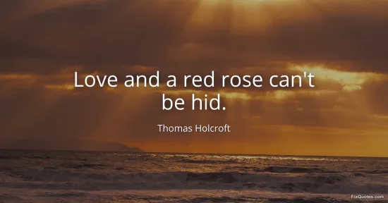Holcroft’s line has the snap of stagecraft: a tidy image that does double duty as romance and warning. “Love and a red rose can’t be hid” isn’t trying to sound profound; it’s built to land cleanly in an audience’s ear, the way a good dramatic aphorism does. The rose is a prop you can picture instantly, vivid enough to make the claim feel like common sense. Red is the point: not just any flower, but the culturally overdetermined emblem of desire, conspicuous by design.