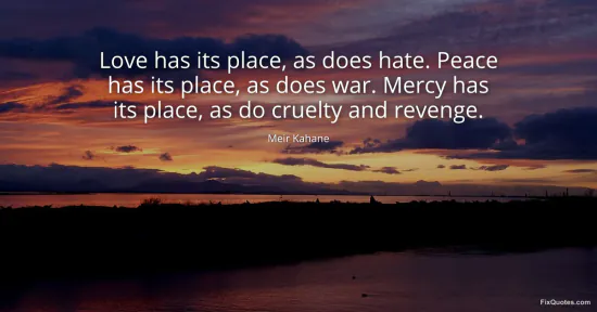 Kahane, Meir. (2026, January 16). Love has its place, as does hate. Peace has its place, as does war. Mercy has its place, as do cruelty and revenge. FixQuotes. https://fixquotes.com/quotes/love-has-its-place-as-does-hate-peace-has-its-88053/