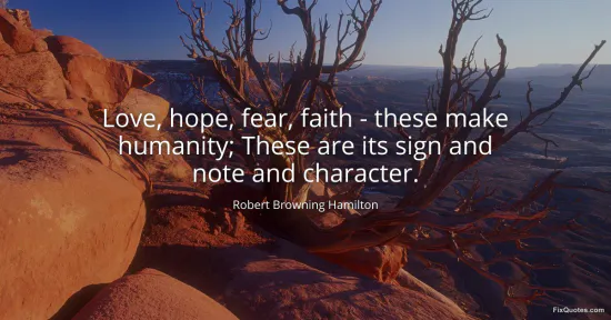 "Love, hope, fear, faith - these make humanity; These are its sign and note and character"
