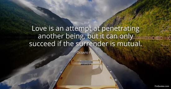 Paz, Octavio. "Love is an attempt at penetrating another being, but it can only succeed if the surrender is mutual." FixQuotes. January 16, 2026. https://fixquotes.com/quotes/love-is-an-attempt-at-penetrating-another-being-105264/.