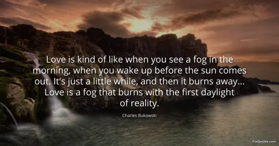 Bukowski, Charles. (2026, February 10). Love is kind of like when you see a fog in the morning, when you wake up before the sun comes out. It's just a little while, and then it burns away... Love is a fog that burns with the first daylight of reality. FixQuotes. https://fixquotes.com/quotes/love-is-kind-of-like-when-you-see-a-fog-in-the-185164/