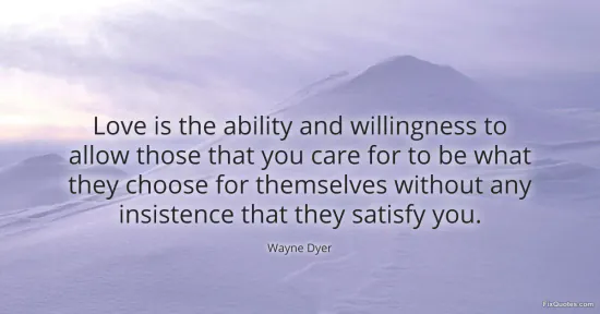 Dyer, Wayne. (2026, January 15). Love is the ability and willingness to allow those that you care for to be what they choose for themselves without any insistence that they satisfy you. FixQuotes. https://fixquotes.com/quotes/love-is-the-ability-and-willingness-to-allow-10763/