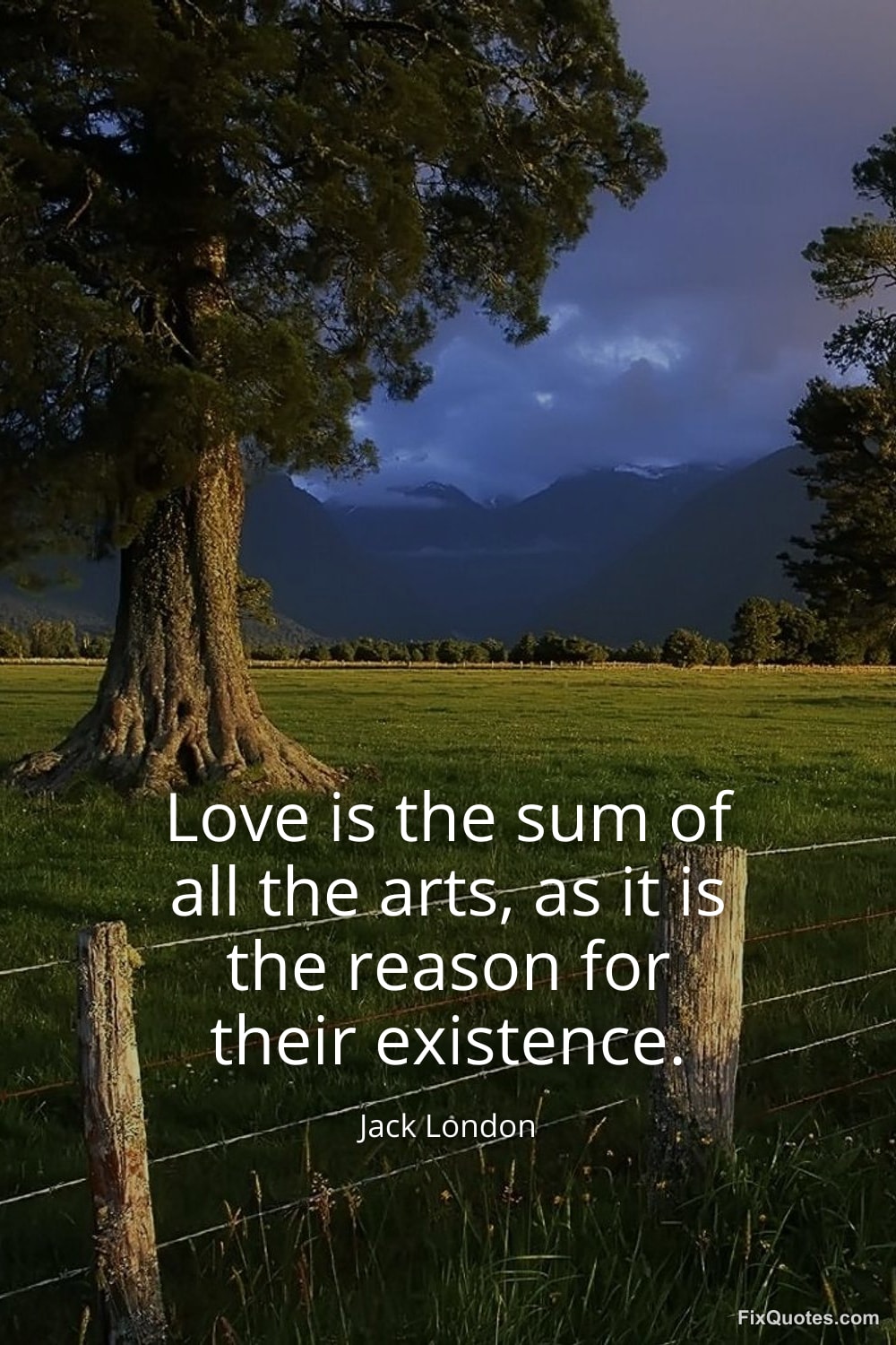 London, Jack. (2026, January 15). Love is the sum of all the arts, as it is the reason for their existence. FixQuotes. https://fixquotes.com/quotes/love-is-the-sum-of-all-the-arts-as-it-is-the-173105/