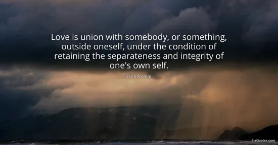 Fromm, Erich. "Love is union with somebody, or something, outside oneself, under the condition of retaining the separateness and integrity of one's own self." FixQuotes. January 15, 2026. https://fixquotes.com/quotes/love-is-union-with-somebody-or-something-outside-31096/.