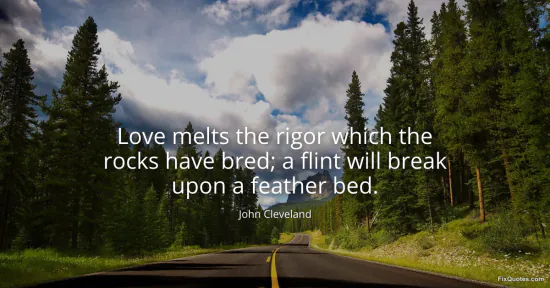 Cleveland, John. (2026, January 15). Love melts the rigor which the rocks have bred; a flint will break upon a feather bed. FixQuotes. https://fixquotes.com/quotes/love-melts-the-rigor-which-the-rocks-have-bred-a-151585/