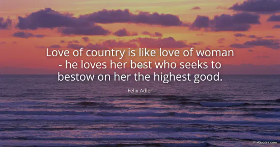 Adler, Felix. (2026, January 17). Love of country is like love of woman - he loves her best who seeks to bestow on her the highest good. FixQuotes. https://fixquotes.com/quotes/love-of-country-is-like-love-of-woman-he-loves-53057/