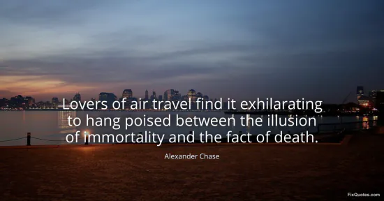 Chase, Alexander. (2026, January 15). Lovers of air travel find it exhilarating to hang poised between the illusion of immortality and the fact of death. FixQuotes. https://fixquotes.com/quotes/lovers-of-air-travel-find-it-exhilarating-to-hang-166918/